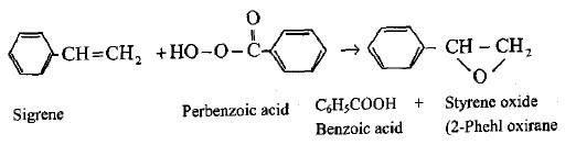 – يمكن الحصول على الأيبوكسيد عن طريق أكسدة الرابطة الثنائية بواسطة فوق أكاسيد الأحماض Peroxyacid مثل فوق أكسيد حمض البنزويك كما بالمعادلات التالية: