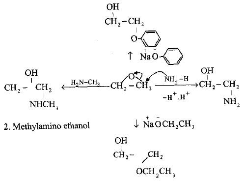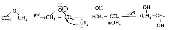 – أما إذا كان الإيبوكسيد المتفاعل أكسيد الاثيلين فإن النيوكليوفيل يرتبط بإحدى ذرات الكربون لحظة انفصام الرابطة (C – O) وذلك لتجنب تكوين أيون كربوكاتيون أولى.