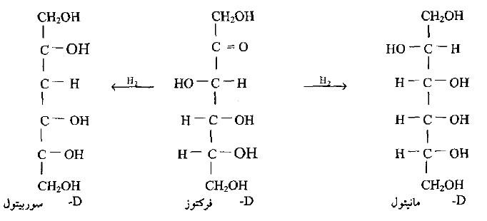 – يتم إصطناع هذه المركبات من الاختزال المحفز بالنيكل أو الاختزال الكهربائي من الالدوزات أو الكيتوزات السداسية المقابلة حيث يتم اختزال مجموعة الكربونيل مما يؤدي إلى تكوين ندين فراغيين ( diastereoisomers) همــا D- سوربیتول و D- مانیتول.