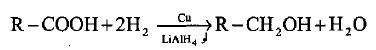 (2) عند وجود النحاس كعامل مساعد أو مباشرة مع هيدريد المنيوم الليثيوم LiAlH4 المذاب في الأيثر فأن ناتج الهدرجة للأحماض الدهنية يكون الكحول المقابل.