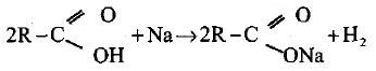 – في تفاعل مشابه للأحماض الكربوكسيلية فأن الأحماض الدهنية تتفاعل مع الفلزات مثل الصوديوم لتكوين الأملاح وغاز الهيدروجين.