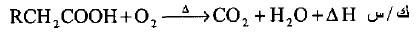 – تحت ظروف شديدة من الحرارة والتسخين وطبيعة العامل المؤكسد فأن الأحماض الدهنية المشبعة تتحلل (تتفكك) في تفاعل باعث للحرارة إلى ثاني أوكسيد الكربون والماء (تتشابه مع الألكانات المشبعة).